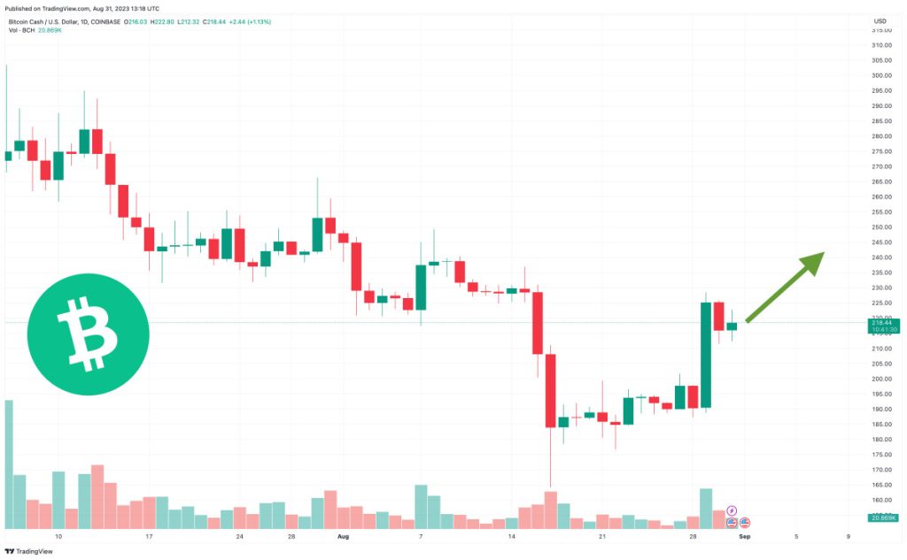 The Bitcoin Cash price has moved to $218.93 today, marking a 1% gain in 24 hours and a 15% rise in a week.