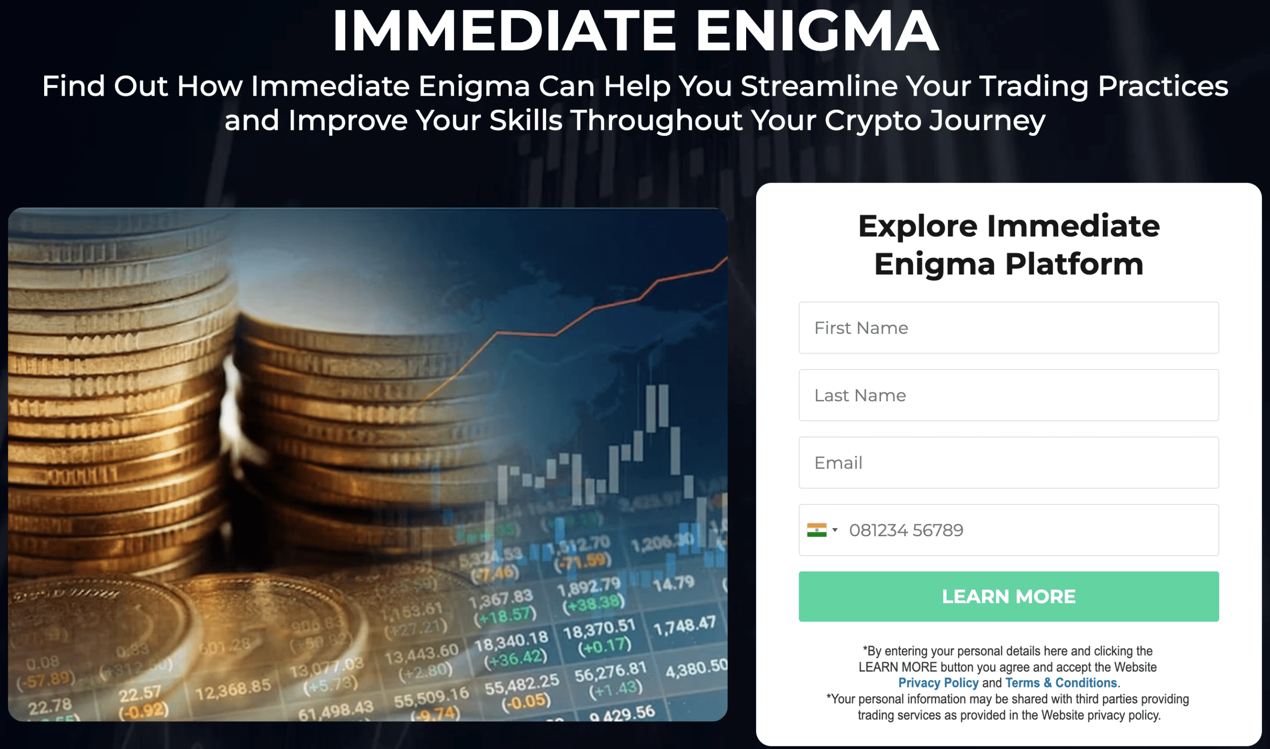 Immediate Enigma claims to be a user-friendly but comprehensive trading platform designed to provide traders with the educational resources and materials they need to start their crypto journey. The other perks that this site purportedly has are strategy development and charting tools.