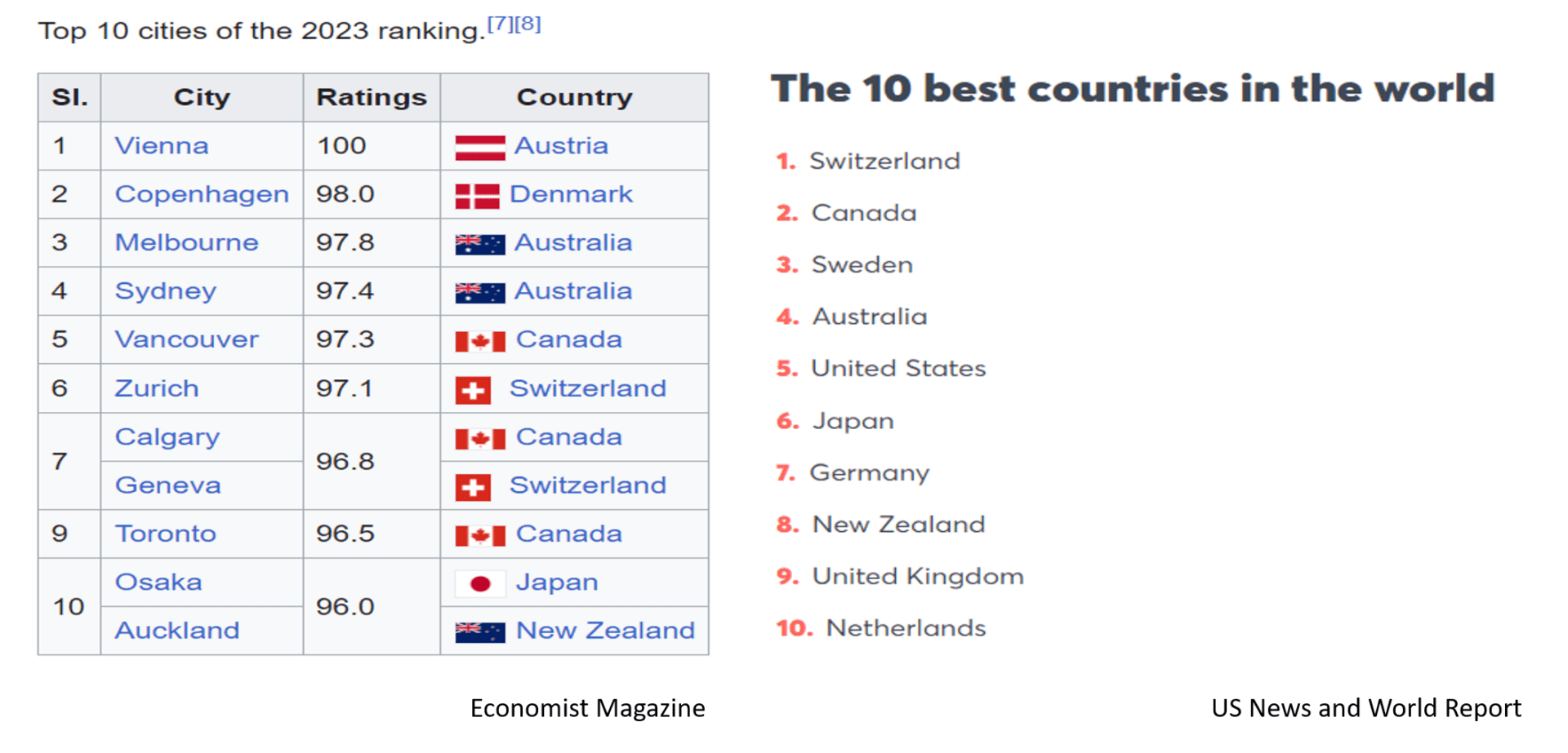 - Recent surveys have rated Canada as the 2nd best country in the world to live in, and the Economist magazine gives Canada 3 of the 10 most livable cities in the world, more than in any other country.