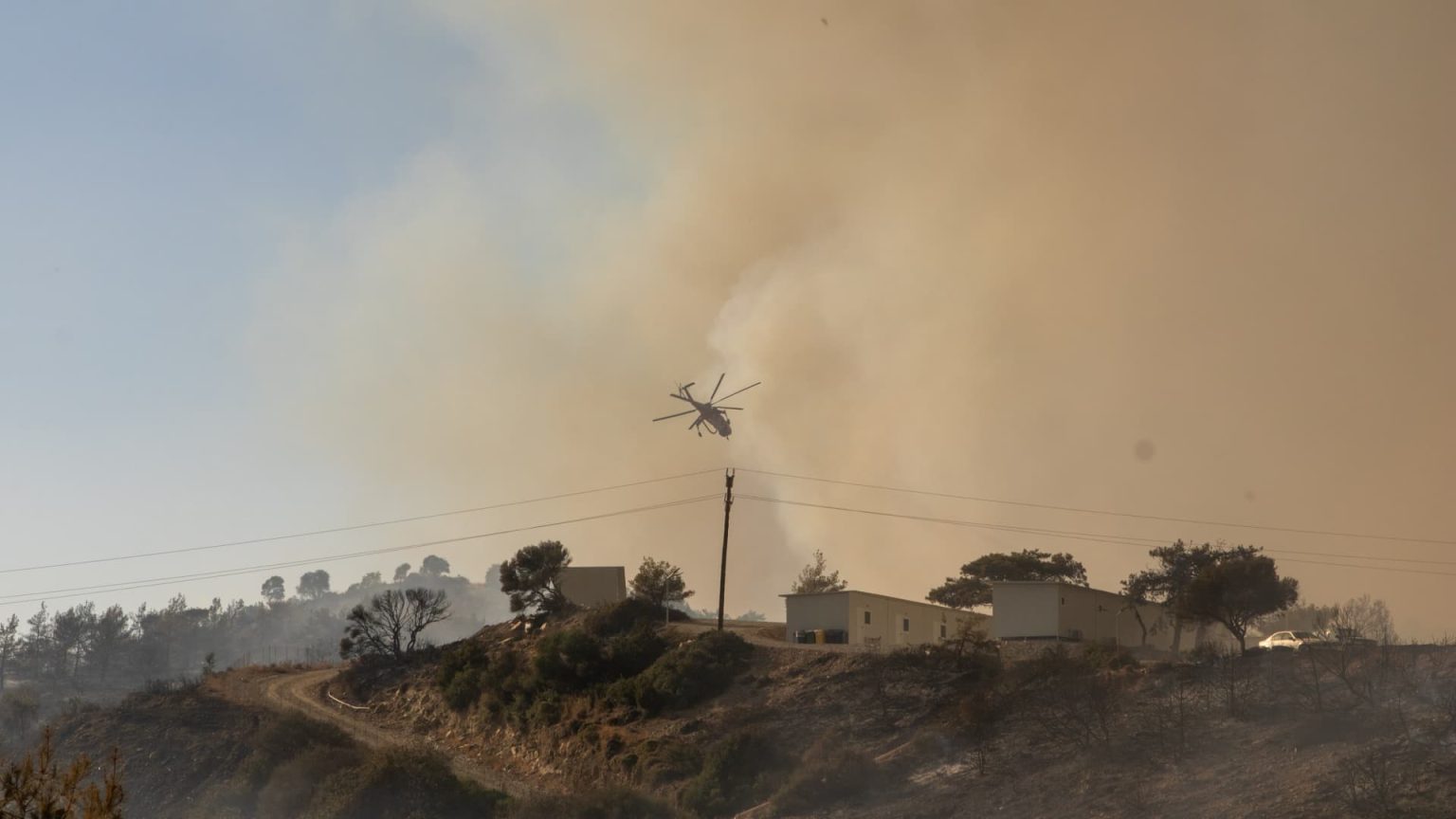 Volunteers fought to extinguish a blaze that blackened the hillside and charred buildings near Lindos, one of the island’s most-visited sites and famed for an acropolis perched on a massive rock within medieval walls.