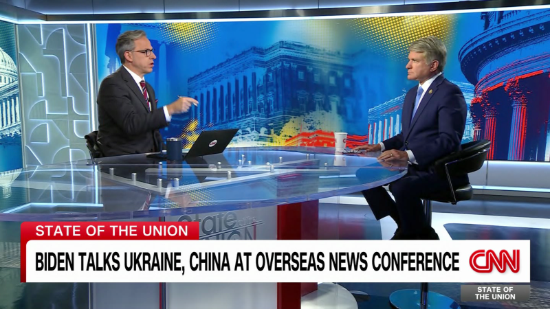 House Foreign Affairs Committee Chairman Rep. Michael McCaul tells CNN’s Jake Tapper that President Biden’s message overseas “was not one of deterrence” against China and that “he’s projecting weakness.”